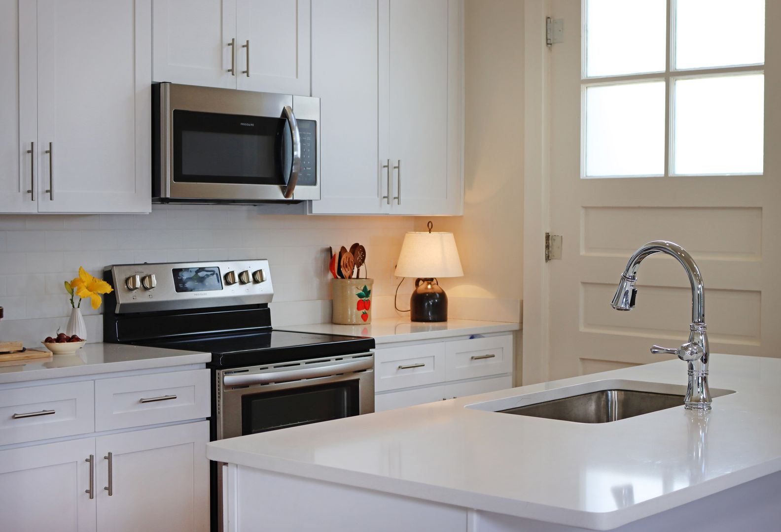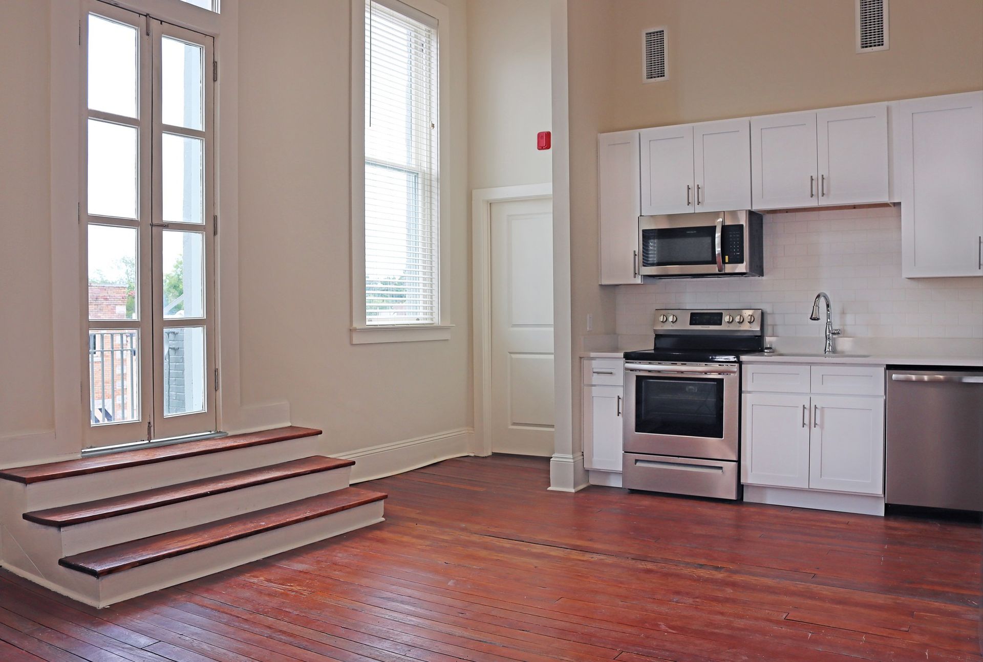 Inside, you’ll find a unit that blends modern luxury with timeless character, featuring quartz countertops, stainless steel appliances, custom cabinets, and a large, sleek kitchen sink. The open floor plan, soaring 10-12 ft. ceilings, and a spacious walk-in closet create an inviting atmosphere. With central heating and air, state-of-the-art safety features, an in-unit washer and dryer, and off-street parking, every detail is designed for comfort and convenience.